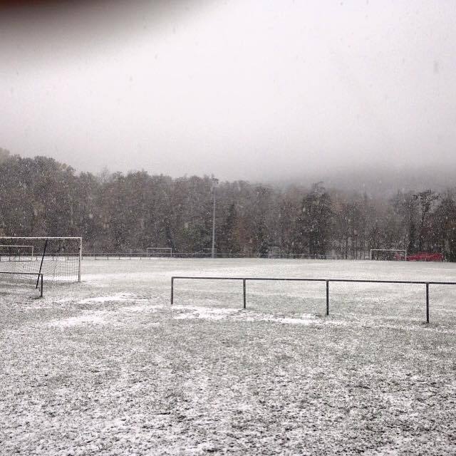 Ce mercredi matin, le stade Émile Martin c'est réveillé sous un léger manteau blanc.