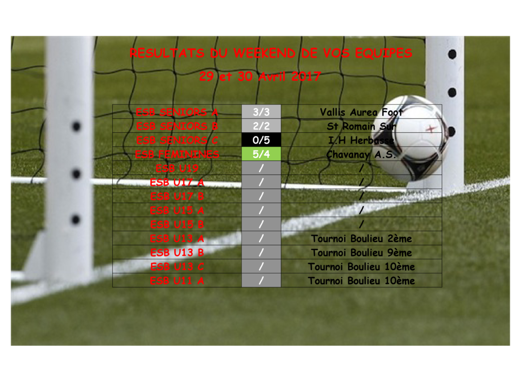 Résultats du Week-end de vos équipes
