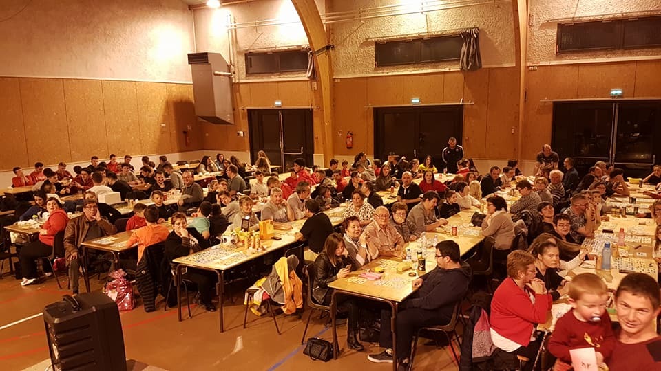 Une soirée très conviviale dans une salle polyvalente bien remplie.