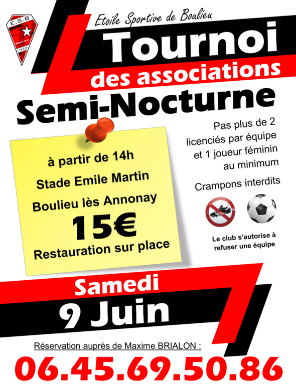 Cette année, il aura lieu le Samedi 9 juin à partir de 14h, en semi-nocturne car les U15 du club sont en finale de coupe à Salaise à 11h. Évidemment que vous pouvez et devez aller voir la finale des U15 avant de venir vous amuser au tournoi.