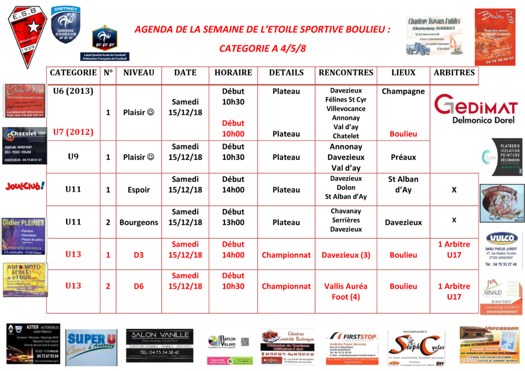 AGENDA DE LA SEMAINE : CATÉGORIE A 4/5/8