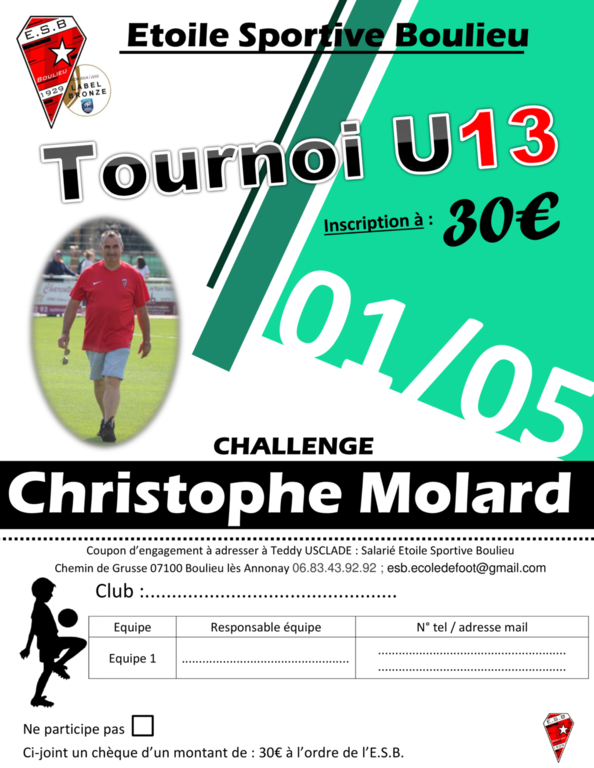 Cette année, l'Étoile Sportive de Boulieu organise son traditionnel tournoi du 1er mai (U11 et U13)