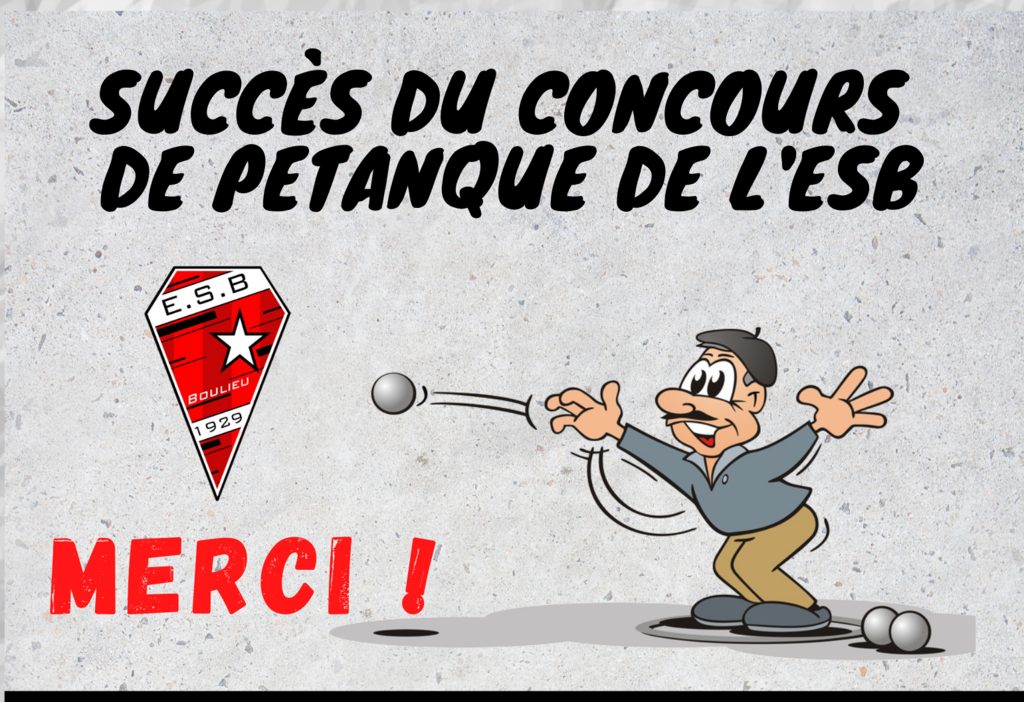 Samedi après midi, 200 joueurs de pétanque se sont retrouvés au stade Emile Martin à l’occasion du concours organisé par l'Etoile Sportive de Boulieu. Un beau succès, chaque doublette a disputé au minimum 3 parties avant la phase éliminatoire.