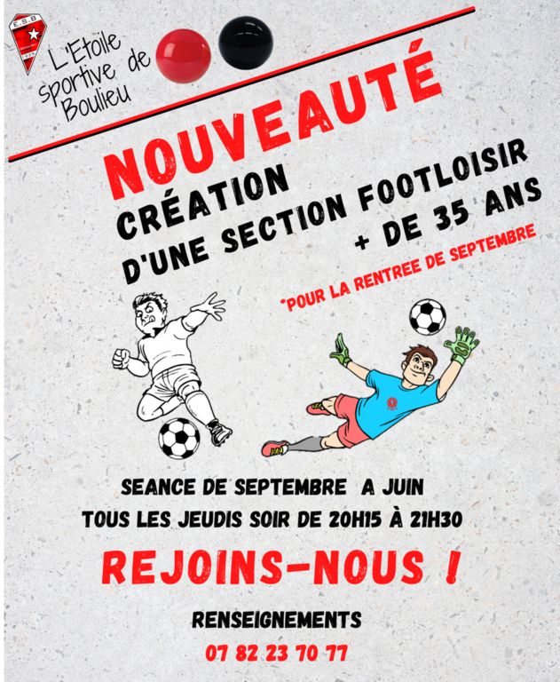 A partir de Septembre 2021, L'ESB đź”´âš« lance sa section foot-loisir pour les + de 35 ans.